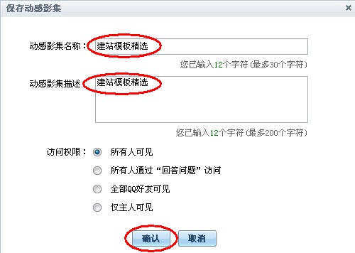 再添加影集的名称、描述后点确认,如图: