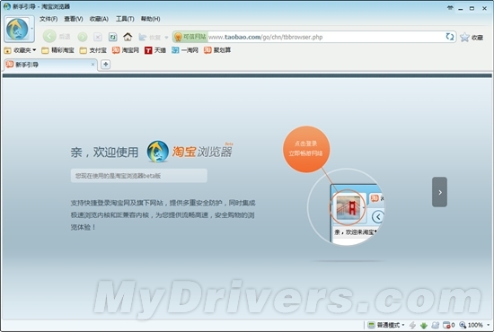 淘宝浏览器支持快捷登录淘宝网及旗下网站,提供多重安全防护,同时集成极速浏览内核和IE兼容内核,提供流畅高速、安全购物的浏览体验。