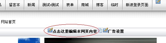 首先要在登录到后台的前提下点击栏目中你要编辑的页面,如图:举例编辑下图中的“网站首页”