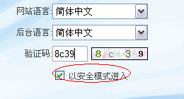 1)以安全模式登录您的网站后台(图1),或者您如果已经在后台的可以直接切换到安全模式(图2)。