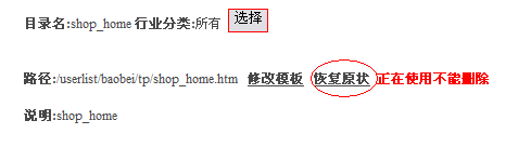 4)点到 这里对你的首页正在使用的这个主栏目模板进行“恢复原状”,再点“选择”这个模板。