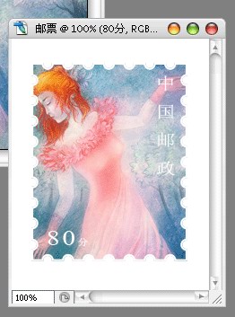 13、同样,在邮票左下角输入文字“80分”,字体形状及大小见下图(图5)。