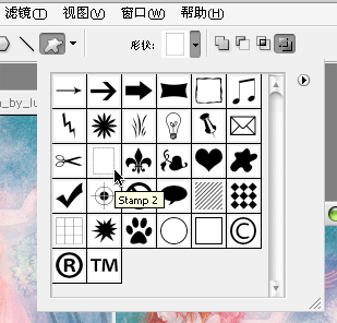 8、点选工具栏“自定形状工具”工具。在工具属性栏中点击“形状”旁的下拉箭头并选取“邮票形状”工具。(图3)点击自定形状按钮旁的下拉箭头,在出现的“自定形状选项”中点选“定义的比例”。