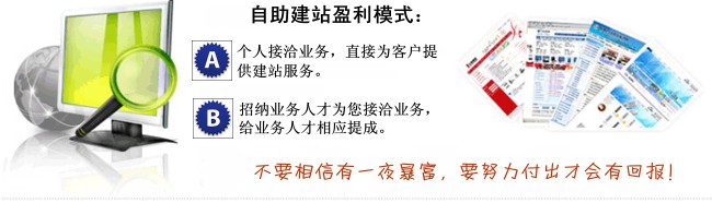 而获得这些收入,您只需略懂的一点建站的基础常识,花费您一点与客户沟通的时间,您完全可以在业余时间兼职来运营您的代理业务。这只不过是最保守的计算,相信您的业绩永不止这些吧。再加上第二年的客户续费及第二年的新客户,翻番是绝对不成问题的!事实上,我们的很多代理也都是这么操作的。你可以组成自己的一个团队,或者一个工作室,轻轻松松实现你的创业梦想。